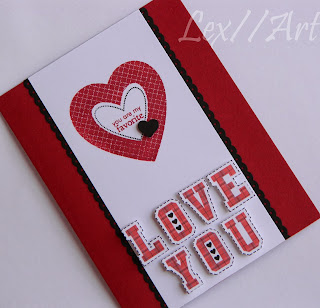 I used Erin Lincoln's "Love You" Image for my card. I really liked the colors she chose as well as the plaid design. I cut out each letter individually and popped it up on the bottom of my card with some dimensionals. I also used the PTI Framed Out #11 Stamp set and the inside of my card includes a sentiment from the Happy Hearts Stamp set.